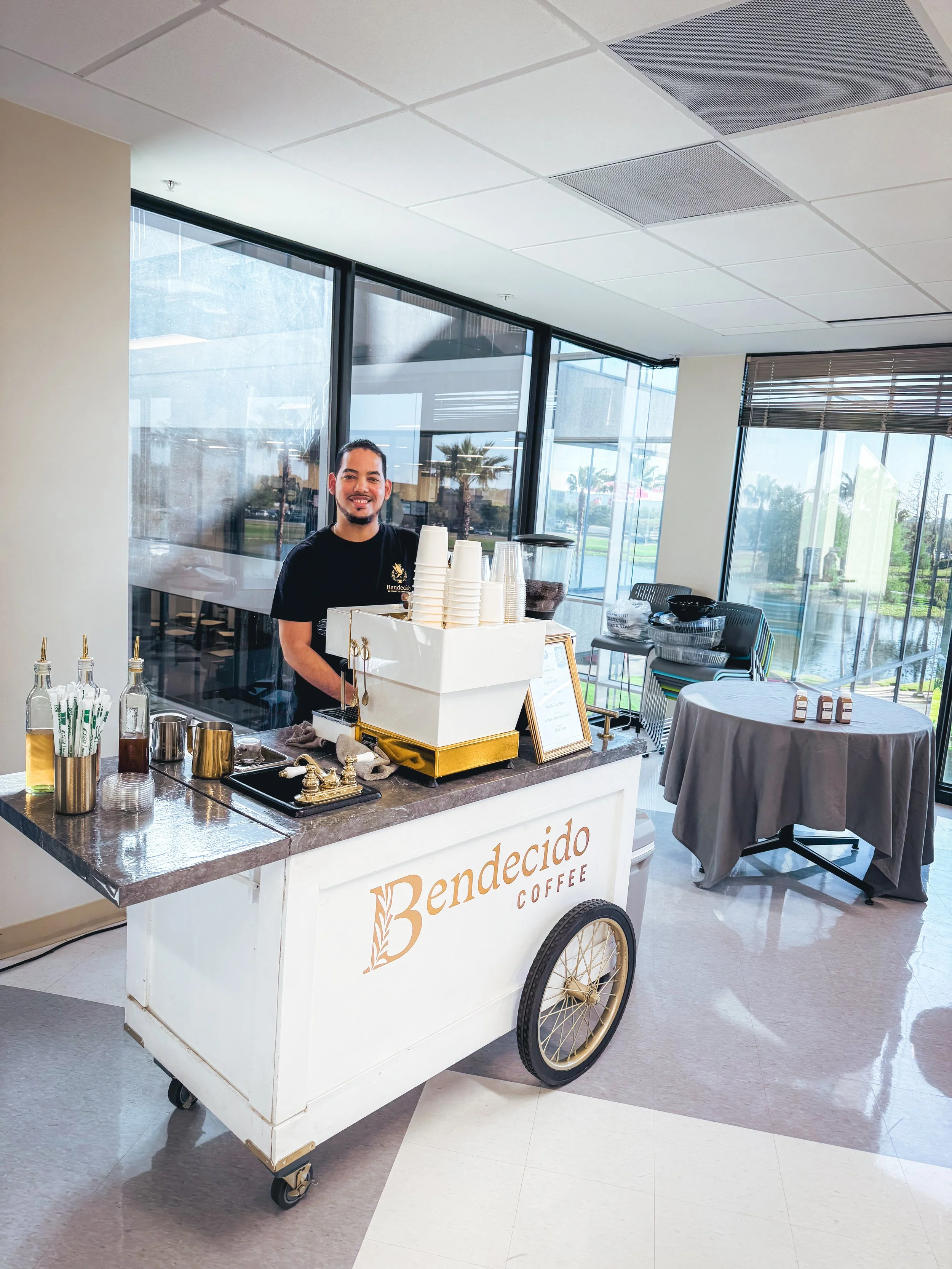 Elevate your next Tampa Bay event with Bendecido Coffee's premier mobile espresso bar service. From weddings to corporate gatherings and brand activations, we create unique and unforgettable coffee cart experiences throughout Tampa, Oldsmar, St. Pete, Clearwater, Wesley Chapel, Lutz, Brandon, and beyond.